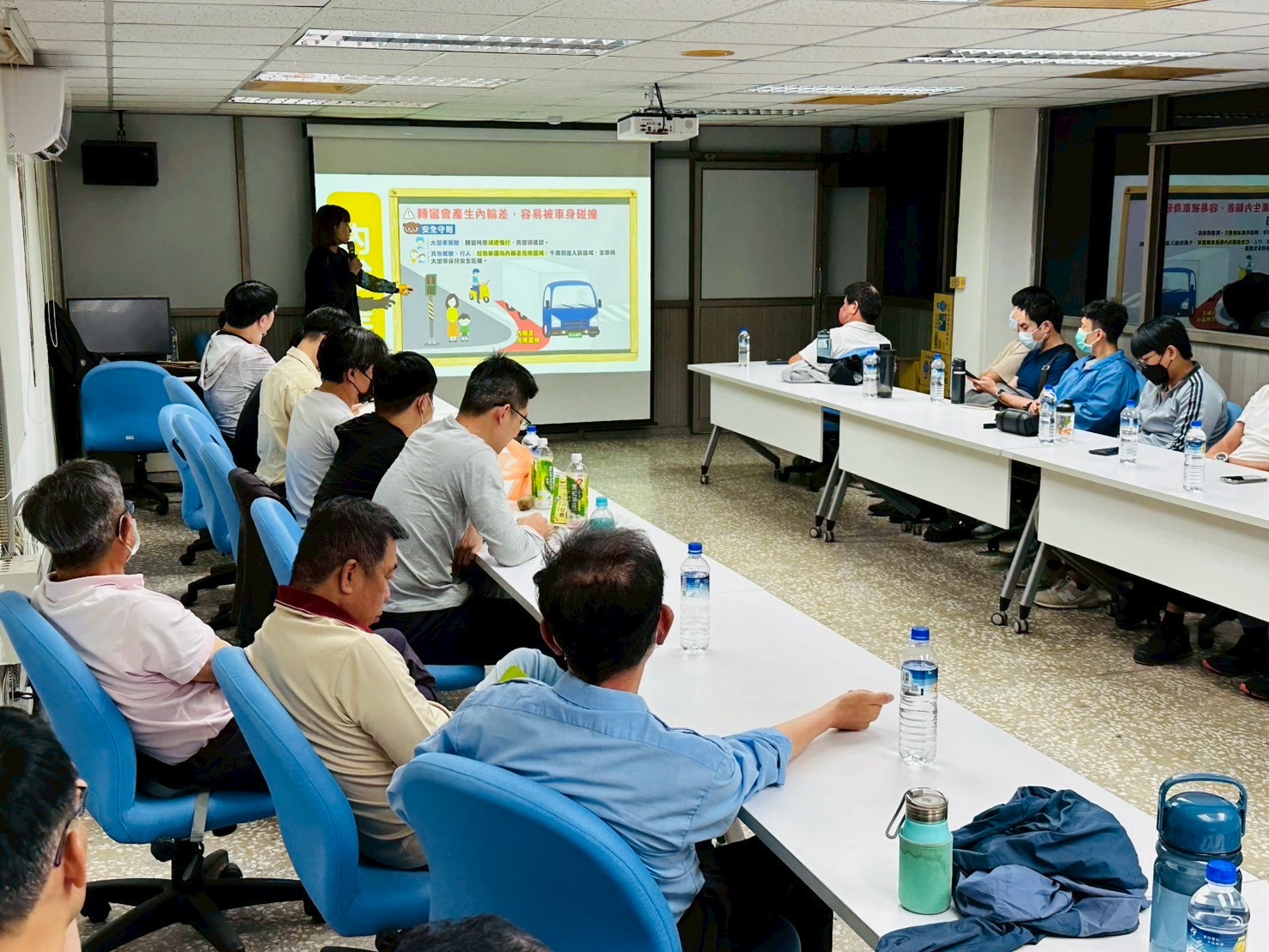 除大型車駕駛外,針對一般職員日常通勤行為,講師亦強調「分心駕駛」及「疲勞駕駛」的潛在風險。行車時若使用手機、操作導航或從事其他分散注意力之行為,將使反應時間明顯延遲;而長時間工作後精神不濟,亦可能出現短暫恍神甚至微睡眠狀況,均大幅提升事故發生機率。講師呼籲駕駛人應專心駕駛、保持良好精神狀態,必要時適時休息,避免因一時分心或疲勞而釀成不可挽回的後果,影響自身及他人生命安全。