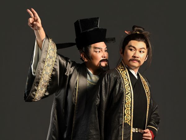 圖1:]國立傳統藝術中心臺灣豫劇團《東窗謀計》演出(右)殷青群飾秦檜、林文瑋飾岳飛。